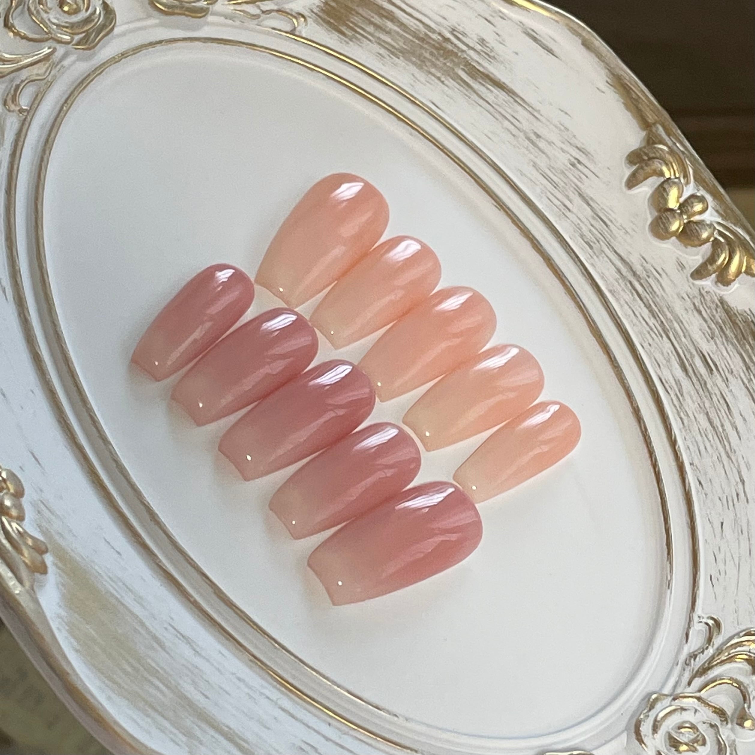 肌なじみの良い柔らかなミルクピンクは、どんなスタイルにも調和し、季節を問わずお楽しみいただけます。デザインは、ホワイトのグラデーションを施しており、上品さと華やかさを兼ね備えています。特別な日でも普段使いでも、どんなシーンにもぴったりです。